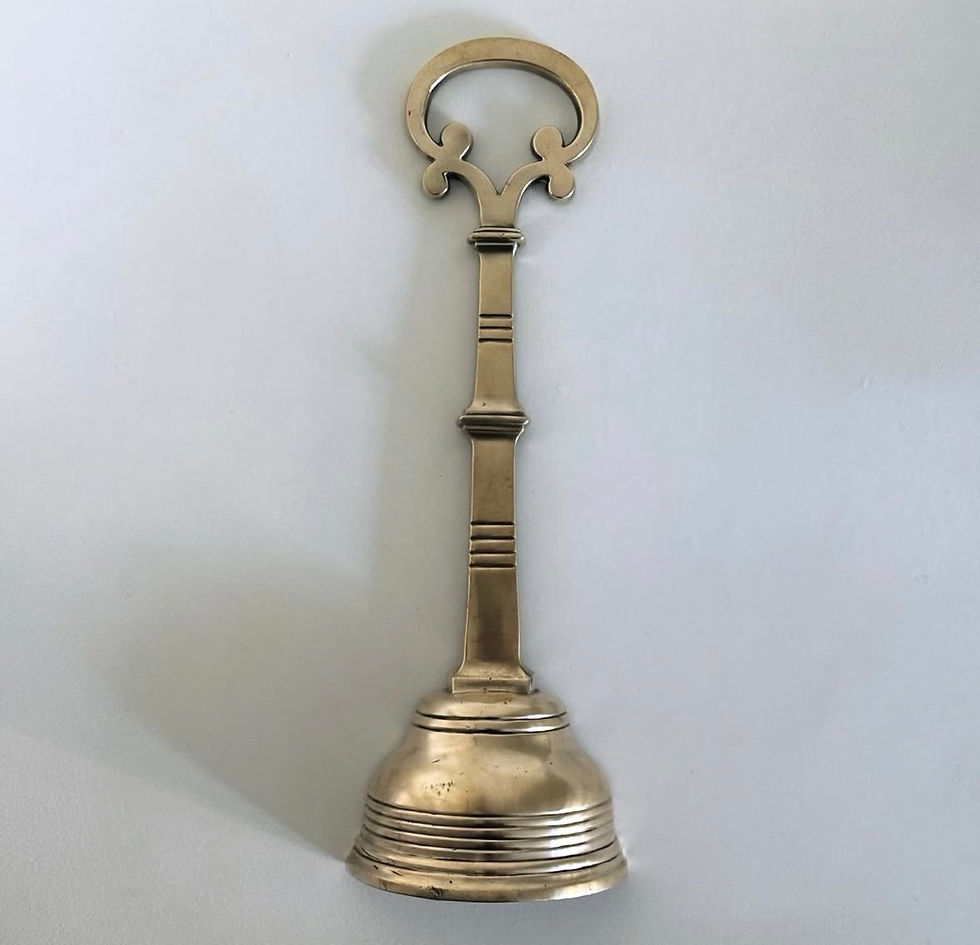 A Tall Brass Bell-Shaped Doorstop with Rope Twist Handle, c.1870