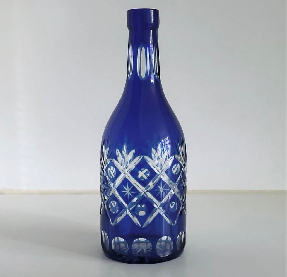 A Victorian Cobalt Blue and Clear Glass Carafe, c.1900